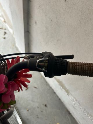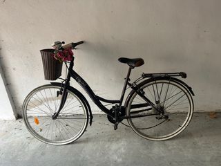 Bicicleta de paseo para mujer, ideal para la ciudad. Cuenta con una cesta delantera y un portaequipajes trasero. - Cesta de mimbre. - Flores decorativas en el manillar. - Guardabarros delantero y trasero. - Pata de cabra. - Solo falta aire de los neumáticos y limpiar