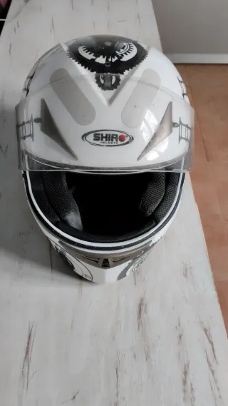 Casco de moto de la marca Shiro. - Diseño blanco con detalles gráficos. - Visera transparente.