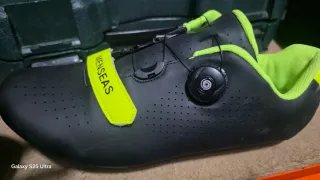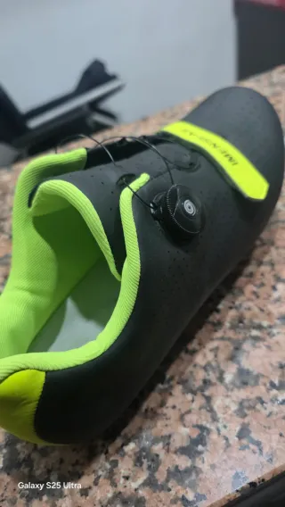 Zapatilla de ciclismo un 45 para carretera en color negro con detalles en verde lima. Cierre de dial. un dia solo de uso nuevas Las doy con las calas de regalo nuevas - Exterior sintético. - Suela rígida. - Interior textil.