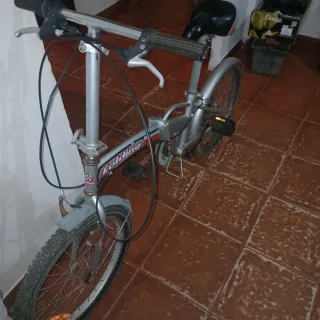 Bicicleta plegable de color plateado, ideal para desplazamientos urbanos o para llevarla contigo a donde vayas. (Negociable) - Cuadro de aluminio. - Ruedas de 20 pulgadas. - Sillín ajustable. - Frenos delanteros y traseros.
