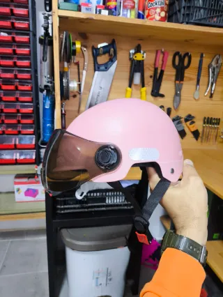 Casco de bicicleta en color rosa con visera integrada. Ideal para protegerte en tus paseos. - Color: Rosa - Visera: Transparente/ahumada - Correa ajustable