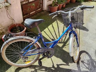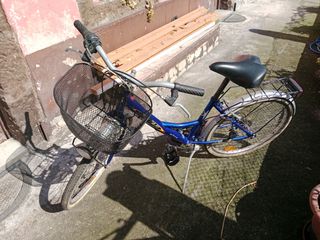 Bicicleta de paseo, marca Artar. Está en buen estado, aunque tiene algunas señales de uso. - Modelo Artar. - Color azul. - Incluye cesta delantera y portaequipajes trasero. - Ruedas de 26 pulgadas.