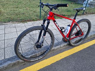 Bicicleta de montaña MMR en color rojo, ideal para disfrutar de rutas y senderos.solo tiene 5 salidas por el carril.bici,esta como nueva. Como a estrenar. RockShox SID World Cup - Ruedas Vittoria Barzo. Cuadro carbono. Frenos xt Llantas PROTOTYPE Zenith Team 29"