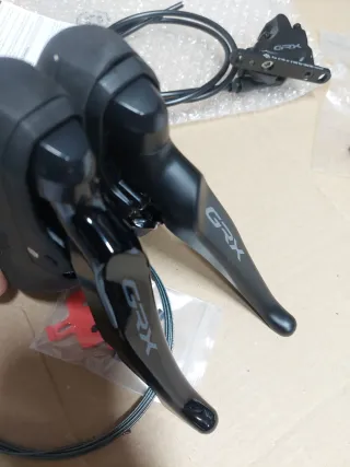 Conjunto de frenos y manetas para bici de carretera o gravel nuevo a estrenar. Shimano GRX RX600-400 de 2x10 velocidades u opcion de 1x10 V también disponible. ⚠️Se incluye todo lo necesario ➡️Freno delantero con maneta Shimano RX600 de 2 velocidades y pinza RX400 con adaptador para discos de 160 mm, con latiguillo purgado de 950 mm en versión J-KIT para instalar por interior del cuadro fácilmente. ➡️Freno trasero con maneta Shimano RX 400 y pinza RX400, de 10 velocidades con latiguillo purgado de 1700mm en versión J-KIT también ⚠️Maneta delantera Shimano GRX RX600 de mayor gama y calidad por el precio de la RX400 de gama inferior