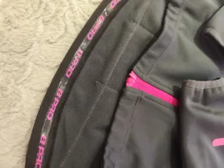 Chaqueta deportiva (40) para mujer de la marca B-PRO. Ideal para actividades al aire libre. - Color gris con detalles en rosa - Cremallera frontal. - Cuello alto. - Puños elásticos. Pantalón (42) a conjunto. Solo venta x INPOST. DISCULPA Y GRACIAS #BPRO #MAVIC #NW #NIKE Bici