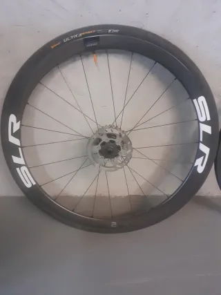 Juego de ruedas de carbono para bicicleta de carretera. - Marca: SLR - Material: Carbono - Tipo de cubierta: Continental Ultrasport - Frenos: Disco