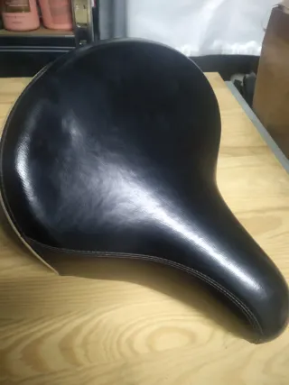 Sillín de bicicleta de diseño ancho y cómodo, ideal para paseos largos. - Color negro. - Material sintético. - Costuras reforzadas.