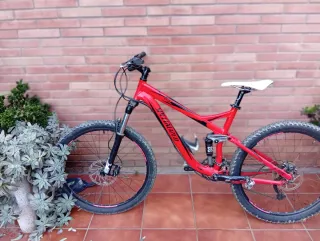 Bicicleta de montaña Specialized en color rojo. - Cuadro de aluminio. - Suspensión delantera y trasera. - Frenos de disco.