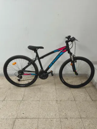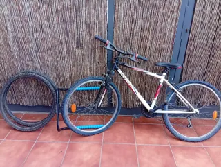 Bicicleta Rockrider Decathlon. Usada menos de 10 veces. Lleva un años parada. Las ruedas están desinfladas quizás hay que cambiar la cámara. Sería óptimo una puesta a punto.