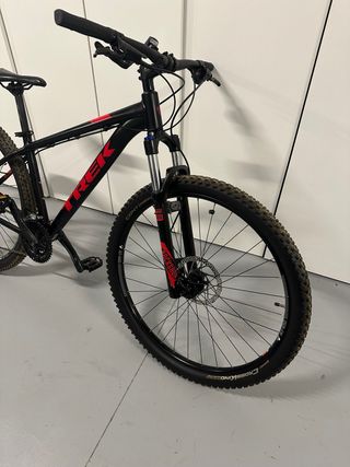 Bicicleta de montaña Trek Marlin 7 29” talla de cuadro M . Se encuentra en perfecto estado , cuenta con las siguientes características: -Freno hidráulico -Freno de disco -Bloqueo de suspensión delantera -Componentes shimano( cassette , pedalier, cambio trasero, desviador, manetas) -Suspensión rockshox -Componentes bontrager( Sillin , manillar) -Contador de km( habría que ponerle pila) #mtb#bici#enduro#descenso