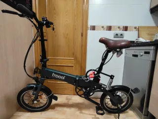 Bicicleta eléctrica Freeel de color verde oscuro. Es un modelo plegable con sillín marrón. - Marca: Freeel - Color: Verde oscuro - Tipo: Eléctrica plegable - Sillín: Marrón (40 €a parte) -mochila delantera (50 € a parte) -candado krytonita (60€ a parte.) Está muy nueva, tiene unos 1100km. Revisión pasada hace un año con un buen reconocimiento por la tienda/taller y no se ha usado a penas en el ultimo año. Tiene 2 juegos de llaves y el kit de herramientas completos.