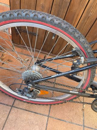 Bicicleta de montaña Decathlon Rockrider 5.0 con ruedas de 26 pulgadas. - Cuadro de bicicleta. - Sillín nuevo. - Manillar con cambio de marchas - Ruedas 26” - Pedales con 3 platos y 7 piñones, 21 marchas. - Botellero