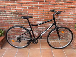 Btwin en color negro, del 2018 pero casi sin uso, sin golpes, unicamente se ha usado para recorrer 48 kms. Era de una familiar, vendo por no usar. - Talla M. - Cuadro de acero. - Ruedas de 28 pulgadas. - Frenos V-brake. - Con anillo antisalida de cadena. - Sillín ergonómico. - Cambio Shimano de 6 velocidades. Bicicleta muy ligera y cómoda, ideal para ir por el Paseo Maritimo o a la Universidad. Duerme siempre en garage. Nueva en tienda vale 199 EUR.