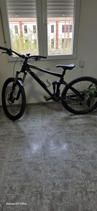 Bicicleta Cube de montaña con doble suspensión y ruedas de 27.5 pulgadas. - Cuadro de aluminio. - Horquilla delantera Fox. - Amortiguador trasero. - Frenos de disco hidráulicos. - Transmisión Shimano. -Tija telescópica. Le he cambiado el manillar, los sistema de cambios y más. Precio NEGOCIABLE y acepto cambio por una de DH o enduro.