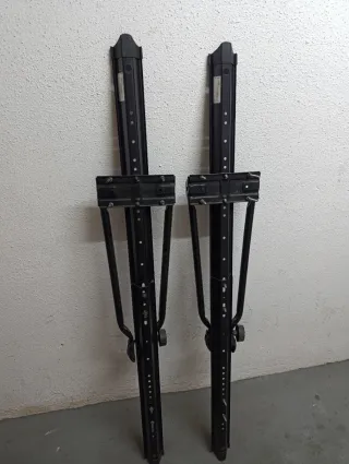 Par de soportes para portabicicletas de baca. - Color negro. - Fabricados en metal resistente. - Ajustables en altura.