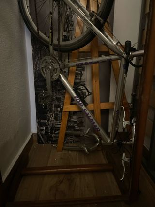Bicicleta de carretera le falta rueda delantera