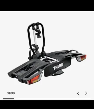Portabicicletas Thule EasyFold XT 933, diseñado para transportar bicicletas de forma segura y cómoda. - Plegable para un fácil almacenamiento y transporte. - Luces traseras integradas. - Marca: Thule.