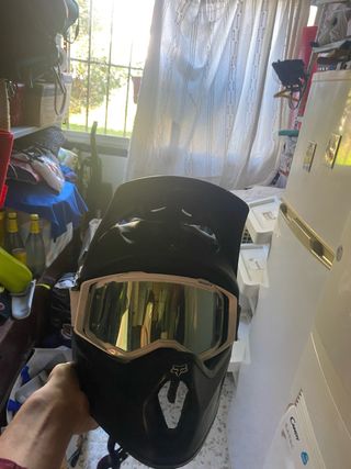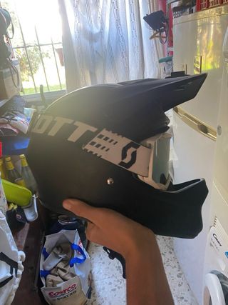 Casco protector para moto, bicicleta o patín. - Color negro. - Diseño integral. - Incluye gafas.