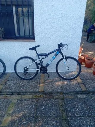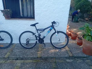 Bicicleta de montaña con doble suspensión, ideal para terrenos irregulares. Su diseño combina funcionalidad y estilo. - - - Cambio Shimano.