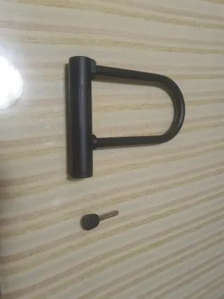 Candado de seguridad en forma de U, ideal para proteger tu bicicleta o moto. Incluye su llave. - Color: Negro. - Diseño robusto.