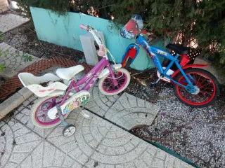 Dos bicicletas infantiles, ideales para niños de 4 a 8 años. - Bicicleta rosa con detalles de princesas. - Bicicleta azul con diseño de Spiderman. - Incluyen ruedines de apoyo. También regalo dos motos correpasillos sin pedales uno para niña y otro para niño negociable