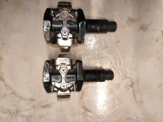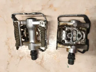 Par de pedales automáticos Shimano para bicicleta. - Sistema SPD. - Cuerpo de metal. - Eje roscado.