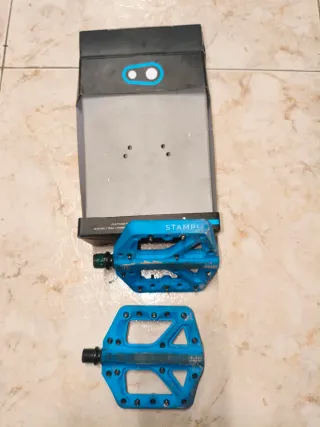 Pedales de plataforma Crankbrothers Stamp 1 en color azul. - Diseño robusto y ligero. - Superficie con pines para un agarre óptimo. - Eje de acero. - Cuerpo de polímero.