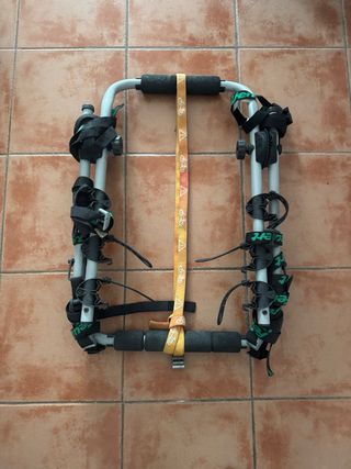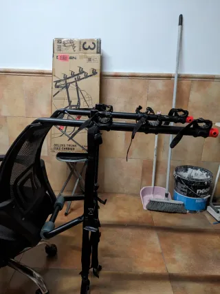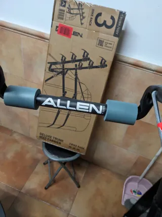 Portaequipajes Allen para 3 bicicletas, modelo 103 DL Deluxe Trunk. Se uso en una ocasión por emergencia porque no tenía como trasportar las bicis es de Amazon me costó por los 60€ y la verdad que funcionó muy bien pero ya no lo voy a utilizar más. - Marca: Allen - Capacidad: 3 bicicletas - Tipo: Trunk/SUV