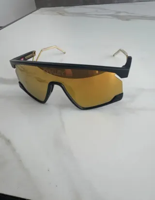 Gafas Oakley BXTR Metal, modelo original. - Montura negra. - Lentes con acabado espejo dorado. - Patillas metálicas doradas.