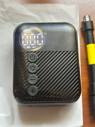 Hinchadora portátil mini, muy compacta y ligera (157 g). Medidas: 3 cm ancho, 7,5 cm alto y 6 cm largo. Autonomía de 2 min 40 s y carga rápida en unos 30 min. Tiene 3 modos: 🚴 bici 🏍️ moto ⚽ balones Se puede ajustar la presión en bares y se apaga sola cuando llega a la presión indicada. Incluye todos los accesorios de la foto (adaptadores, aguja, cable USB, bolsa). Ideal para llevar en la mochila 🎒 SE HACEN ENVIOS POR LA APLICACIÓN Wallapop o V i n t e d