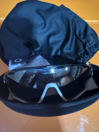 Gafas deportivas Oakley Jawbreaker con lentes Prizm. Diseño moderno y protección. - Lentes Prizm. - Montura blanca y negra. - Incluye funda protectora.