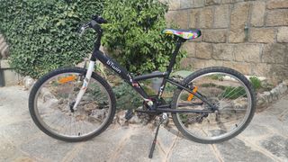 Bicicleta Btwin de 24 pulgadas, ideal para niños o jóvenes. Su diseño es llamativo y deportivo. - Cuadro de acero. - Ruedas de 24 pulgadas. - Frenos V-brake. - Sillín estampado. - 6 velocidades - cambio shimano