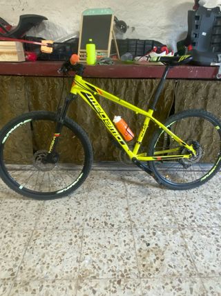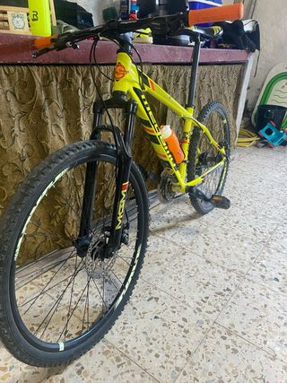 Bicicleta de montaña de color amarillo brillante. Ideal para paseos y rutas. - Cuadro de aluminio. - Ruedas de 29 pulgadas. - Frenos de disco.