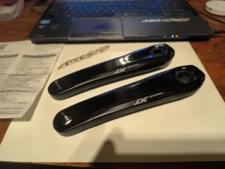 Bielas Sram Force para sistema GXP, en 172,5mm de largas, tapa potenciometro con rotura, no se si funcona (creo que es el Force porque son de fibra de carbono)