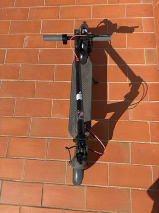 Patinete eléctrico en color negro. - Manillar ajustable. - Rueda delantera y trasera. - Plataforma para los pies. Unico fallo es que hay que cambiar la rueda de atras que viene incluida con el patin