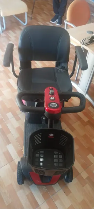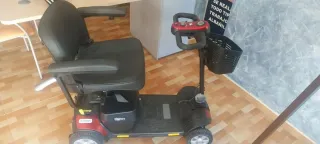 Silla eléctrica plegable en buen estado, ideal para facilitar la movilidad. Ha tenido un solo uso. - Diseño compacto y fácil de transportar. - Asiento cómodo y acolchado. - Cesta delantera para llevar objetos.