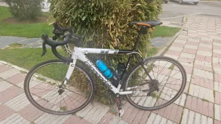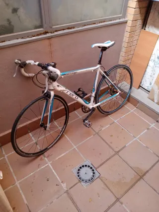 bicicleta carretera, talla 54 cuadro aluminio con marcas del uso y algun roce de guardarla con las otras bicis, horquilla de carbono, grupo entero Utregra 10 velocidades platos rotor ovalados tambien tengo los originales por si no te gustan ovalados, bielas de carbono, ruedas mavic cubiertas vittoria rubino pro nuebas 28mm y tija de carbono.