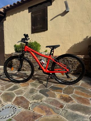 Bicicleta de montaña RockRider ST 520 en talla S. Ideal para iniciarse en el ciclismo de montaña. - Cuadro de aluminio. - Frenos de disco. - Ruedas de 27.5 pulgadas. Transmisión completa puesta nueva (cadena, bielas con platos, piñones...) Cubiertas en Vitoria Barzo y Vitoria Mezcal 27,5 x 2.25 en muy buen estado. Cámaras con liquido anti pinchazo Sólo venta en persona, ZONA CIEMPOZUELOS (MADRID )- NO SE HACEN ENVÍOS.