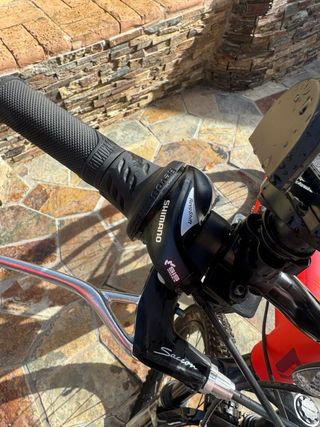Bicicleta de montaña con un diseño llamativo en tonos naranja y gris. Ideal para paseos y rutas. Cuadro de aluminio. Ruedas de 26 pulgadas. Suspensión delantera. Frenos Shimano Marchas de Shimano altus 8x3 Marca de bicicleta boomerang No tiene marchas delanteras. Y el freno de alante lo tienes que poner porque nose como poner un freno diariamente por campo o por la ciudad (PRECIO NEGOCIABLE)