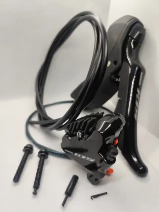 Palanca de freno Shimano 105 para bicicleta. - Para cambio mecánico 2x11v freno disco. - Maneta y pinza, latiguillo conectado en pinza L=1,5m