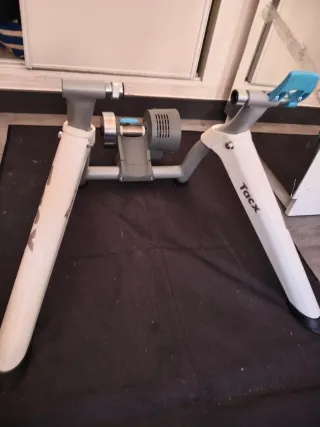 Rodillo de entrenamiento Tacx. Con el rodillo entrego, soporte para rueda delantera, soporte para tablet y manta para el suelo todo de la marca Tacx - Estructura robusta y plegable. - Compatible con bicicletas de carretera y montaña.