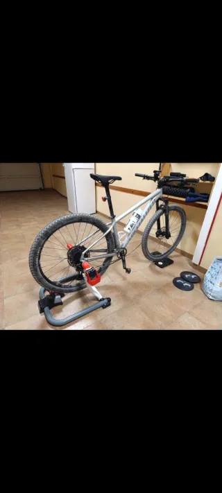 Bicicleta de montaña Specialized Rockhopper con ruedas de 29 pulgadas. Las ruedas estan totalmente nuevas. Usada en rodillo i max 300 kilometros tiene. Esta parada hace un tiempo pegarle una revisada en el taller i listo. Papeles en regla, garantina en Onbike Alcoy. Comprada hace 1 año mas o menos. Cambio a gravel. - Cuadro de aluminio. - Horquilla delantera. - Frenos de disco. -Doble Botellero -Ruedas Tubeles