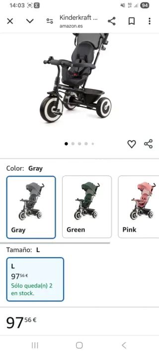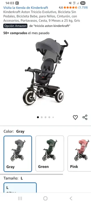 Triciclo Kinderkraft en color gris, talla L. Ideal para paseos. - Color: Gris - Talla: L - Unidades en stock: 2