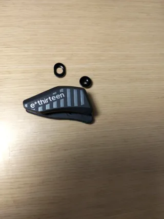 Guía de cadena de la marca e*thirteen. Incluye dos tornillos y una arandela. - Diseño en color negro con detalles grises. - Logotipo de la marca visible.