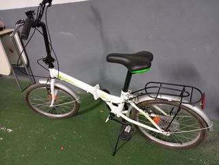Bicicleta plegable en color blanco, ideal para moverse por la ciudad. - Ruedas de 20 pulgadas. - Sillín negro. - Incluye portaequipajes trasero.