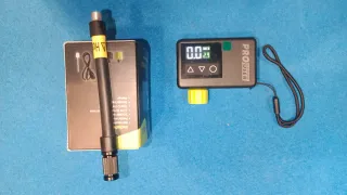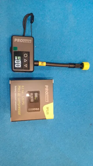 Mini compresor de aire PRO USER. - Modelo BP120. - Presión máxima de 8.2 bar / 120 PSI. - Funciona con batería. - Recargable por USB.