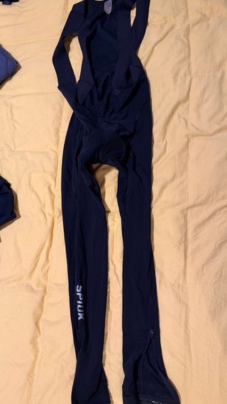Culotte largo Spiuk en color negro, talla L. Diseñado para el frío. - Tejido técnico para condiciones de frío. No cortaviento ni repelente agua. - Cremalleras en los tobillos. - Logo de Spiuk en la pierna. Como nuevo