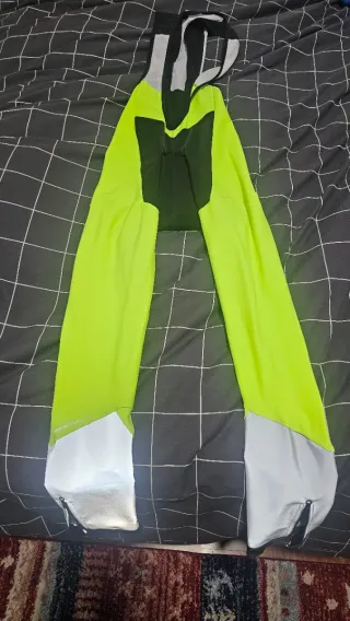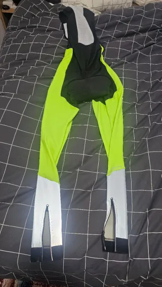 Culote de ciclismo para hombre. Talla M. Puesto 2 veces contadas. Prácticamente nuevo - Tejido de alta visibilidad en color verde lima. - Paneles reflectantes plateados en los bajos. - Cremalleras en los tobillos.