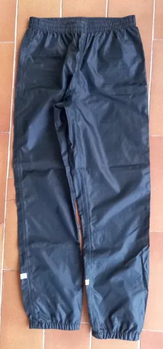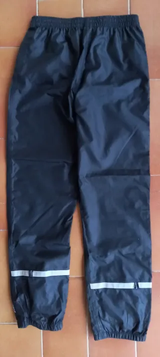 Cubre pantalón impermeable en para lluvia de la marca Btwin, diseñado para ciclismo, pero también se puede usar para senderismo. En color negro con cintura elástica, banda reflectante en la parte trasera y enganche para poner luces y punteras. Talla más grande de la sección de niños que puede valer para adulto de hasta 1'60m de altura. En perfecto estado y con poco uso. Posibilidad de verlo sin compromiso en Colmenarejo en horario de mañana.