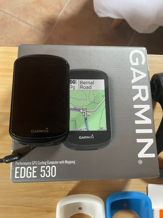 Ciclocomputador Garmin Edge 530 con GPS y mapeo. - Rendimiento avanzado para ciclismo. - Pantalla clara y fácil de leer. - Incluye cable de carga.